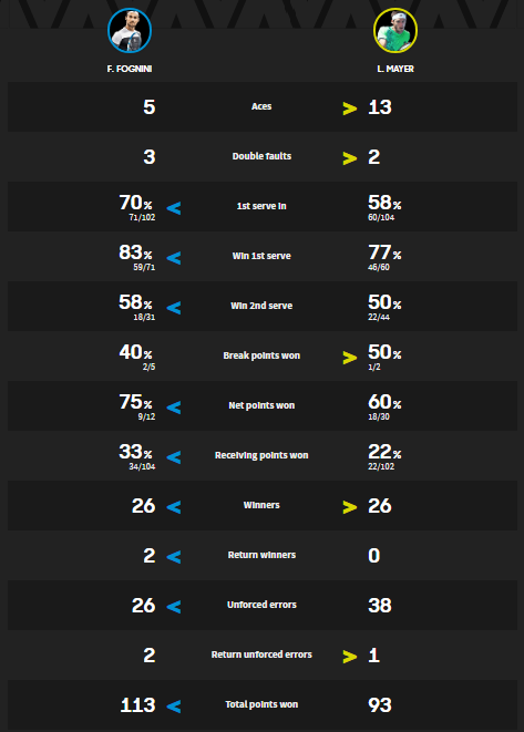 [12] F. Fognini b. L. Mayer 7-6(3) 6-3 7-6(5)