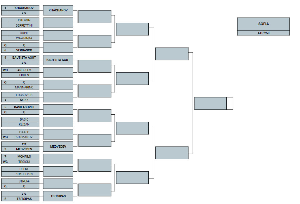 Anche il Sofia Open potrà contare su uno dei protagonisti dell’ultimo Australian Open, lo spumeggiante Stefanos Tsitsipas. Il giovane greco, che è salito al n. 12 in classifica dopo l’exploit della semifinale australiana, è la testa di serie n. 2. Il primo posto spetta a Karen Khachanov (n. 11 ATP). Il russo esordirà con il vincente tra il nostro Matteo Berrettini (n. 53 ATP e reduce dalla bella performance indiana in Coppa Davis) e Denis Istomin, mentre Tsitsipas attende il vincente tra Struff e un qualificato. Riflettori puntati anche su Stan Wawrinka (ora n. 57 ATP e possibile avversario di Khachanov ai quarti) che esordirà con il rumeno Marius Copil; attenzione inoltre a Daniil Medvedev (n. 3 del draw), Roberto Bautista Agut (n. 4), Nikoloz Basilashvili (n. 5), Fernando Verdasco (n. 6), Gaël Monfils (n. 7) e Andreas Seppi (n. 8), secondo italiano in tabellone. Al primo turno, Andreas – anch’egli grande protagonista della trasferta in India di Davis – incrocerà la racchetta con l’ungherese Marton Fucsovic.