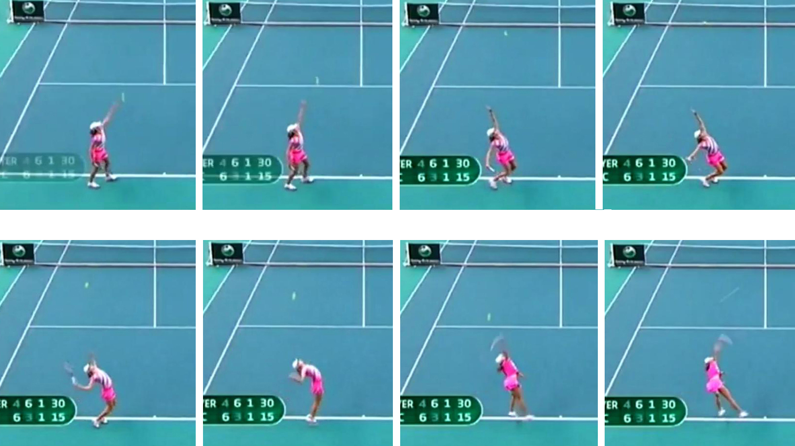 Il suo problema è che per servire con tanta incisività più che sulla forza bruta fa leva sulla spinta della schiena. L’avevo sottolineato in un vecchio articolo, dedicato a lei nel 2012, pubblicando questa fotosequenza:
