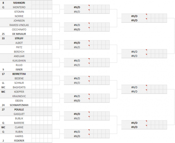 Nessun problema apparente anche per il secondo favorito del seeding e dai bookmaker Roger Federer: primo turno contro il sudafricano Lloyd Harris (n. 87 ATP, suo best ranking), poi il vincente fra Rubin e Clarke (entrambi fuori dai primi 160) e, forse, la tds n. 27 Lucas Pouille che a Stoccarda ha vinto due incontri consecutivi, evento che non gli accadeva dall’Australian Open; paradossalmente la prima insidia potrebbe essere rappresentata agli ottavi (ce lo auguriamo) dal nostro Matteo Berrettini, di cui parleremo più avanti. Il ritiro di Borna Coric ha semplificato un po’ le cose al ragazzo di Roma, e qualora Roger dovesse ritrovarsi in campo con un dritto ballerino (come lo scorso anno contro Kevin Anderson) e una percentuale di prime di servizio sotto il livello di guardia… chissà.