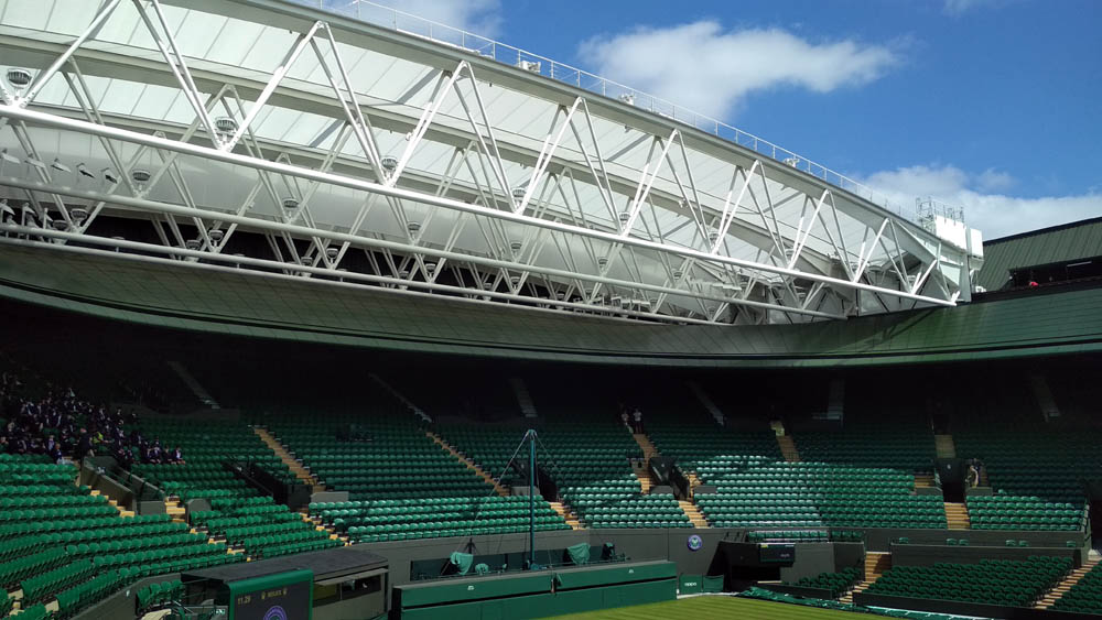 Il circolo di Wimbledon ha organizzato una breve visita guidata al nuovo stadio, e ha fornito alcune indicazioni tecniche. Curiosità: le travi durante l’anno vengono impacchettate in modo diverso, vale a dire tutte insieme sul lato nord; è una scelta fatta per non ostacolare i raggi del sole che provengono da sud. La configurazione “metà e metà” (che si vede nelle foto) viene utilizzata solo durante il torneo, per velocizzare la manovra di apertura e chiusura.