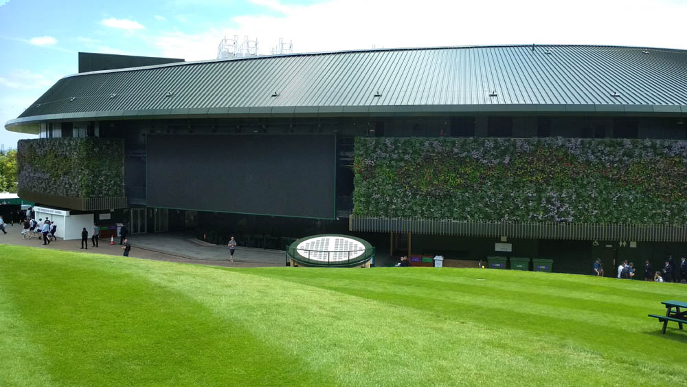 Infine una soluzione del tutto particolare è stata adottata per il lato verso la Henman Hill: il grande schermo è oggi delimitato da due “pareti vegetali”. Così come per le travi (già adottate sul Centrale), anche questa scelta concorre a integrare il nuovo stadio con il resto dell’impianto di Wimbledon, visto che il vero leitmotiv di tutta l’area che ospita i Championships è proprio l’accurata selezione di essenze vegetali con preponderanza di verde e viola, i colori dello stemma del circolo AELTC (All England Lawn Tennis and Croquet Club).