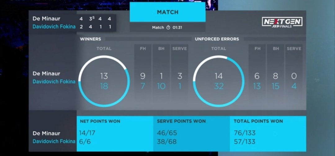 [1] A. de Minaur b. [7] A. Davidovich Fokina 4-2 3-4(5) 4-1 4-1