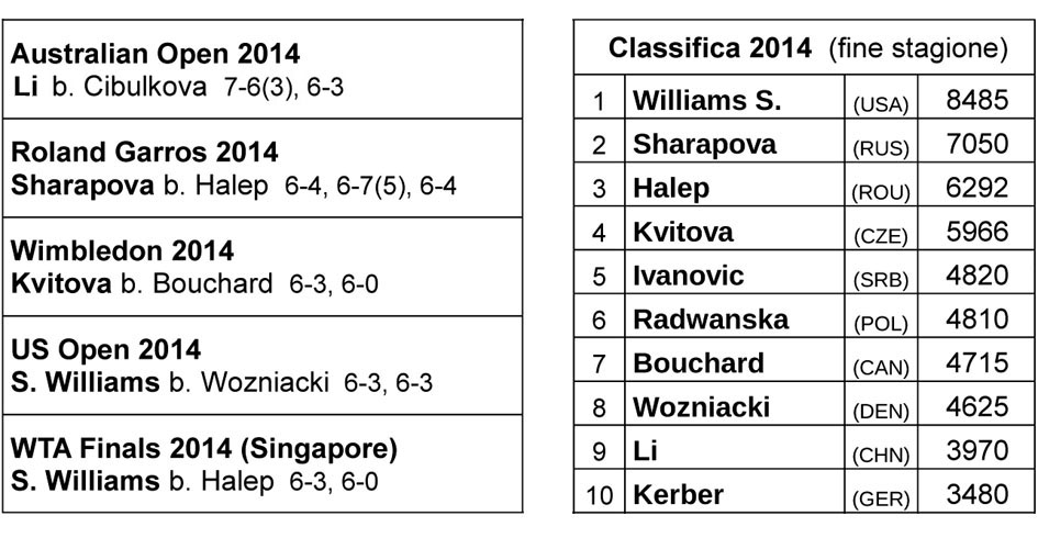Quinto articolo dedicato agli anni ’10 del tennis femminile, che tratterà del 2014. Per la illustrazione dei criteri adottati, rimando alla introduzione del primo articolo, pubblicata martedì 26 novembre.