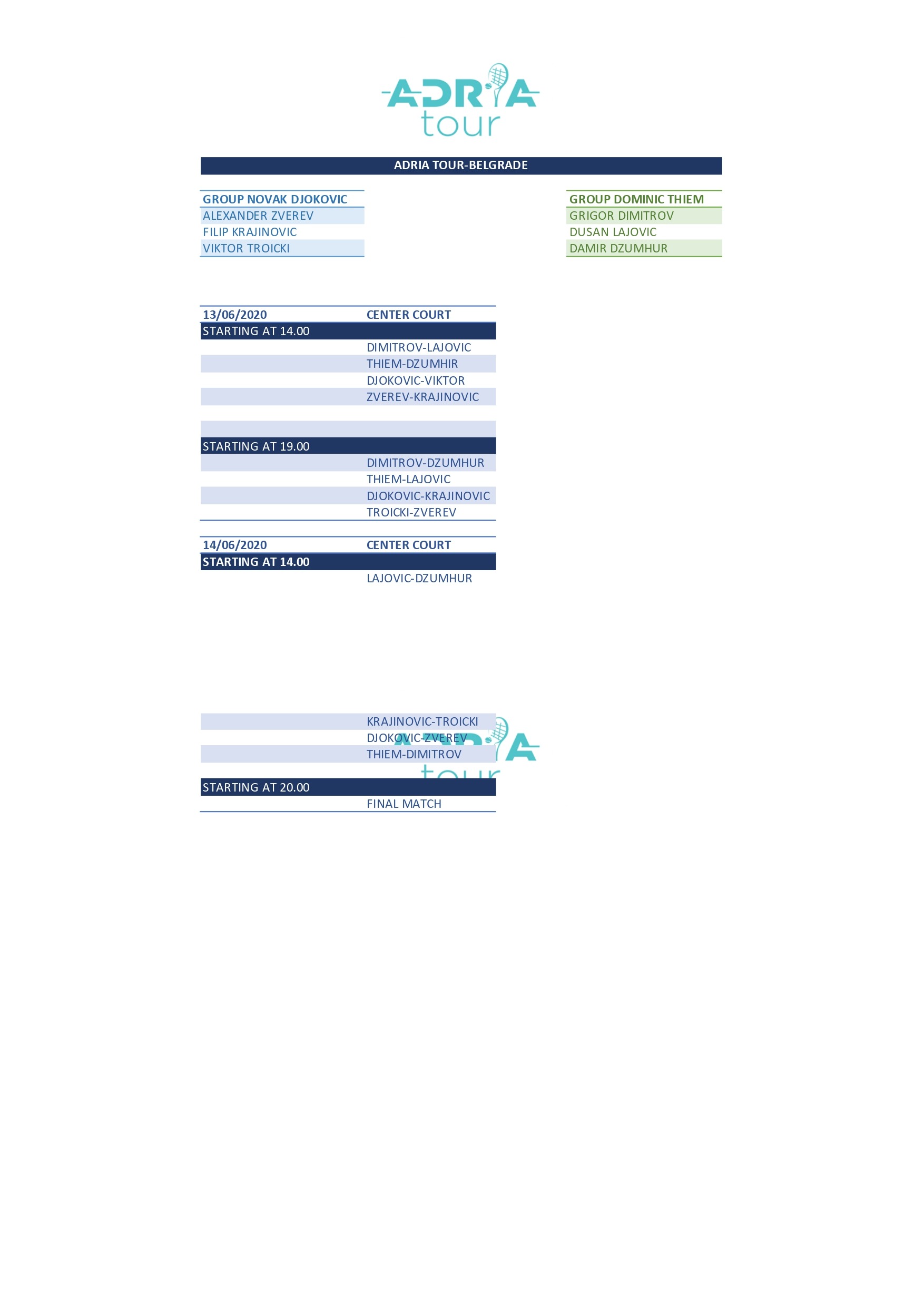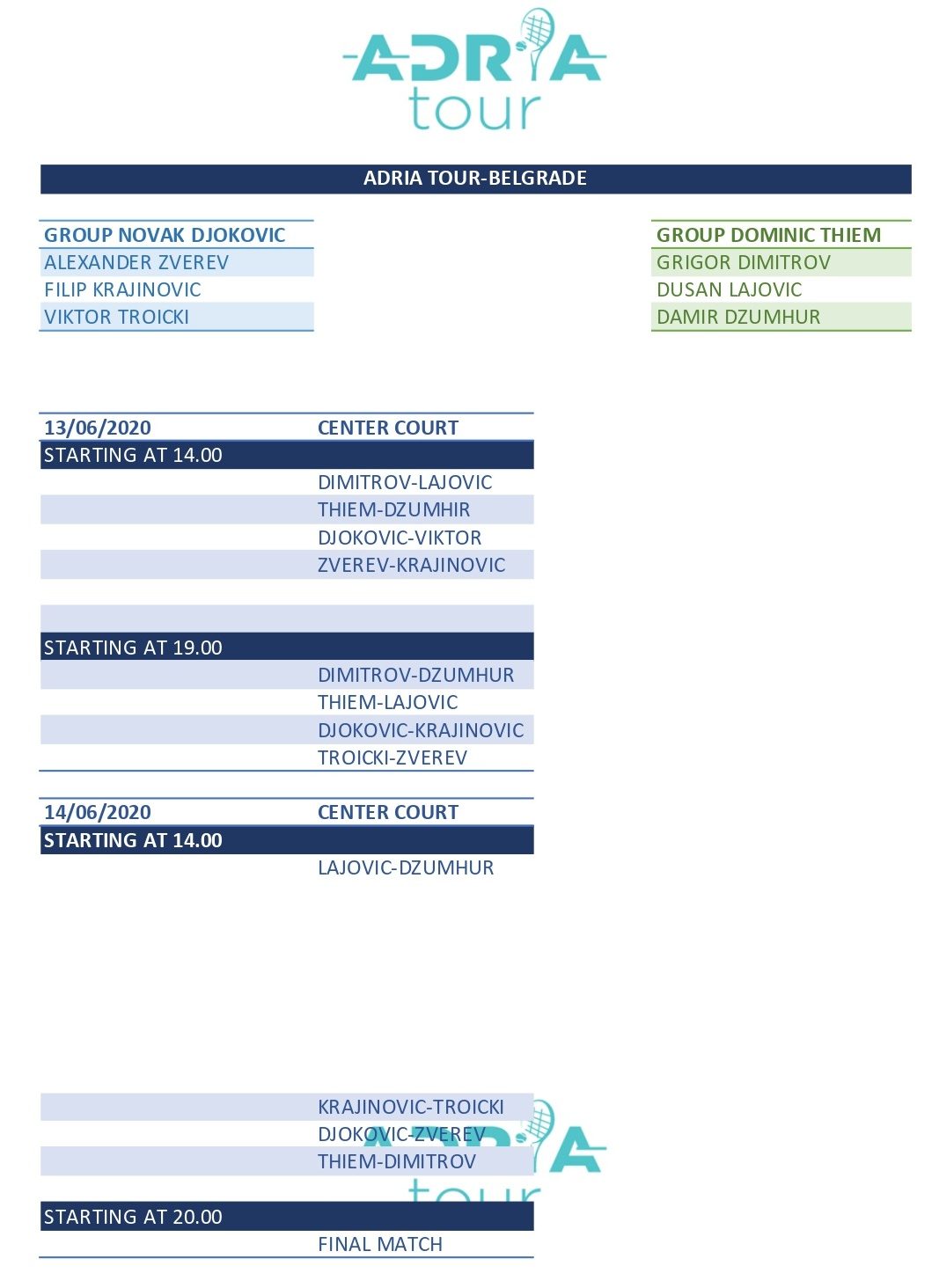 Ogni tappa dell’Adria Tour si disputa nei fine settimana: si parte sabato 13 e domenica 14 appunto a Belgrado, mentre il prossimo weekend toccherà a Zara in Croazia, dove Borna Coric li attende sdraiato sulla spiaggia di fronte a casa.
