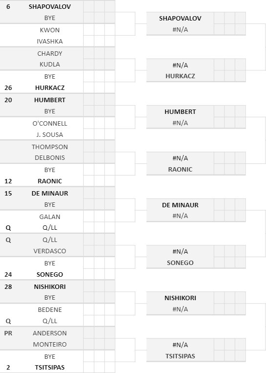 L. Sonego vs BYE – secondo turno vincente Verdasco vs Qualificato