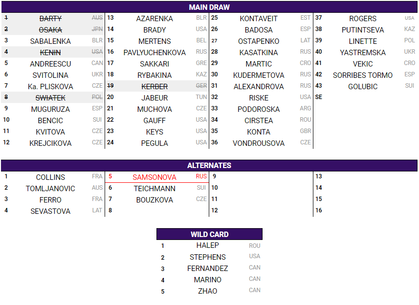 Cinque le wild card assegnate invece per il WTA 1000 di Montreal, che ha visto la sua entry list già condizionata dalle defezioni di Ashleigh Barty, Naomi Osaka, Sofia Kenin e Iga Swiatek. Tra gli inviti dell’organizzazione spiccano quelli a Simona Halep (due volte vincitrice in Quebec, nel 2016 e nel 2018) e Sloane Stephens, battuta in finale nel 2018 proprio dalla romena. Gli altri tre pass sono stati messi al collo di tenniste canadesi: Leylah Fernandez (18 anni, 70 WTA, primo titolo in carriera a marzo a Monterrey), Rebecca Marino (30 anni, 219 WTA) e Carol Zhao (26 anni, 299 del ranking, cinese naturalizzata canadese).