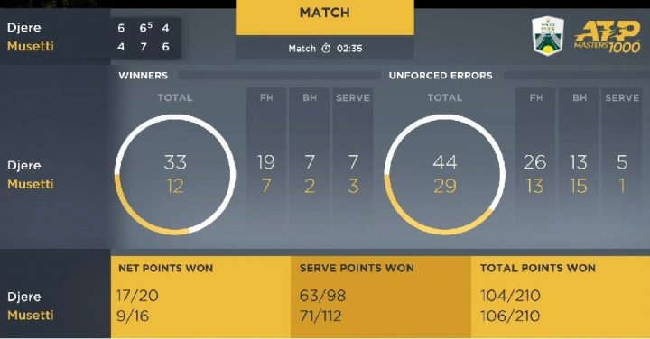Il ventiseienne di Senta continua la sua versione natalizia quando deve affrontare palle break e perde così due servizi consecutivi, salvo poi giocare al meglio nei turni di ribattuta immediatamente successivi. Quella del serbo non è però una scienza esatta, anche perchĂ© in campo c’è un Lorenzo che ci crede e che affidandosi al servizio consolida il vantaggio salendo 4-2. Archiviato con autoritĂ un altro turno di battuta, è quello sul 5-4 che tiene tutti in apnea. Due scambi tirati finiscono con l’errore di Djere forzato dal rovescio lungolinea, siamo a doppio match point, giocato però in modo troppo conservativo. Se ne va una terza palla della vittoria, viene in mente come Andy Murray ha appena perso sul Centrale, ma due risposte sbagliate – la seconda forzata dal servizio seguito a rete – mandano Musetti al secondo turno contro il vincente fra Duckworth e Roberto Bautista Agut.