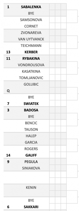 Al WTA 1000 di Doha le uniche top 10 assenti saranno Barty e Pliskova. Tornano in campo Sakkari e Kontaveit che, dopo la vittoria a San Pietroburgo sulla greca, finisce nella parte bassa del tabellone, presidiata da Krejcikova. La numero otto del mondo – e testa di serie numero sei – entra invece nella parte alta, dove la testa di serie numero uno è Sabalenka. Rimanendo nella prima metà di tabellone, al terzo turno la numero due del mondo potrebbe incrociare Kerber, che ha giocato una sola partita in questo 2022, uscendo al primo turno all’Australian Open contro Kanepi. Interessantissimi poi due possibili secondi turni ravvicinati, ovvero Badosa-Bencic e Halep-Gauff, con le vincenti che si affronterebbero al terzo turno.