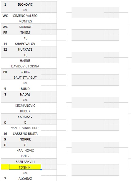 L’urna di Madrid ha riservato diversi primi turni di grande fascino, a partire da quello tra la wild card Andy Murray e l’ancora rientrante Dominic Thiem che deciderà l’avversario di Denis Shapovalov, se il canadese saprà superare il qualificato contro il quale giocherà il match d’esordio. Curiosità anche per i due derby americani, quello tra il campione di Indian Wells Taylor Fritz e l’astro nascente Jenson Brooksby e quello tra Reilly Opelka e l’altro giovane emergente a stelle e strisce Sebastian Korda.