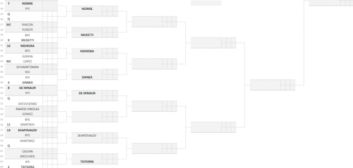 Estratti nella parte bassa invece Jannik Sinner e Lorenzo Musetti, rispettivamente n°4 e n°9 del seeding. Jannik potrebbe ritrovare Schwartzman al secondo turno – se l’argentino riuscirà a prevalere sul cinese Wu all’esordio – mentre Lorenzo sfiderà Rincon o Kubler. Nel caso in cui Sinner confermi la sua partecipazione, l’eventuale terzo turno contro uno tra Nishioka, Goffin o Feliciano Lopez non dovrebbe rappresentare un grande ostacolo. Ai quarti l’altoatesino potrebbe trovare uno tra Musetti e Norrie, verosimilmente avversari agli ottavi.