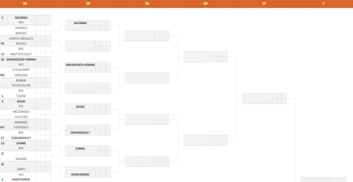 Dando uno sguardo al sorteggio degli italiani, nella parte alta è presente Francesco Passaro, che esordirà contro Fernando Verdasco, in gara grazie ad una wild card. In caso di vittoria affronterebbe il n°15 del tabellone Francisco Cerundolo al secondo turno. Molto interessante il match di primo turno tra Ben Shelton e Mackenzie McDonald: il vincitore sfiderà Casper Ruud, testa di serie n°3.
