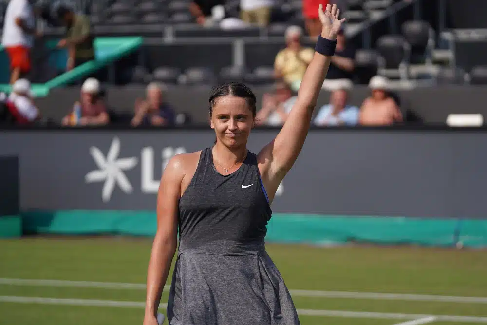 La testa di serie numero 7 Aliaksandra Sasnovich approfitta del ritiro della seconda favorita del torneo Liudmila Samsonova, afflitta da problemi muscolari alla coscia destra, regalandosi una sfida di semi con la russa Alexandrova. La bielorussa vince 7-6(4) 3-1: nell’unico set portato a termine si trova subito in ritardo di un break prima di ottenerne due e di mancare due setpoint sul 5-3, per poi vincere il tie-break grazie a una risposta di dritto fuori misura della rivale.