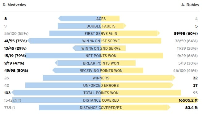 [3]D.Medvedev b. [8]A.Rublev 6-4 6-3 6-4