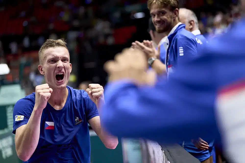 Per l’incontro di doppio il capitano ceco Jaro Navratil, sul punteggio di 2-0 sceglie di far riposare il tennista di punta Jiri Lehecka e opta per il classe 2005 Jakub Mensik. E Il giovanissimo atleta di Prostejov, alto 193 centimetri, si rivela l’uomo in più nella giornata perfetta della squadra ospite.