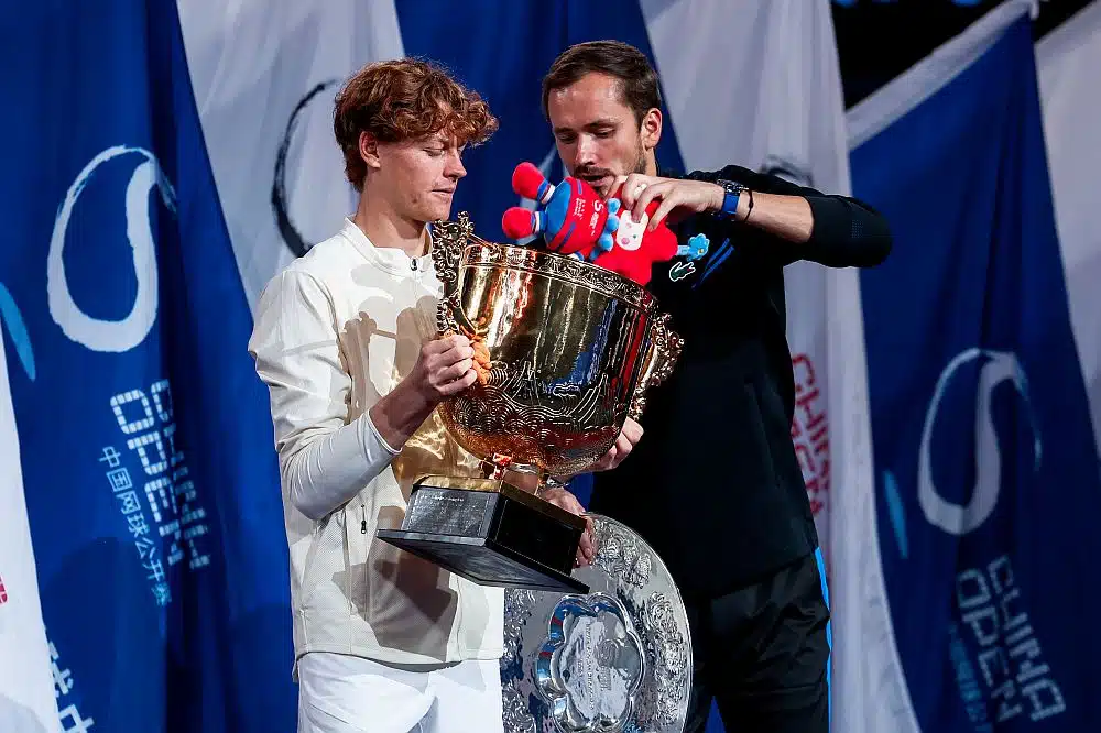 Daniil Medvedev (destra) e Jannik Sinner (sinistra) - Pechino 2023 (foto Twitter @ChinaOpen)