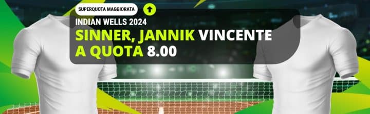 Tempo di sorprese e leggende nel deserto della California, al BNP Paribas Open. Giorni destinati a segnare la storia, personale e non solo, come quello appena terminato con la vittoria di Luca Nardi su Novak Djokovic. E ancor di più come quello che ci apprestiamo a vivere, che vedrà protagonista colui che ora è il favorito n.1 a portare a casa il torneo, Jannik Sinner. La sconfitta di Nole dà un’ulteriore speranza all’azzurro di uscire con il trofeo domenica 17 marzo. Ipotesi più che concreta, come da inizio torneo suggeriscono i bookmakers, con la quota dell’altoatesino scivolata a 2,75 su Bet365. Ma rimane, anzi ora spicca, la maggiorata promossa da Goldbet e Better per i nuovi iscritti, che potrebbero vincere 8 volte la posta giocata investendo sul trionfo di Sinner ad Indian Wells. Giocata che con il nuovo sviluppo del tabellone assume tinte ancor più favorevoli e positive. Ricordiamo che va effettuata sempre entro l’inizio del primo match di giornata.