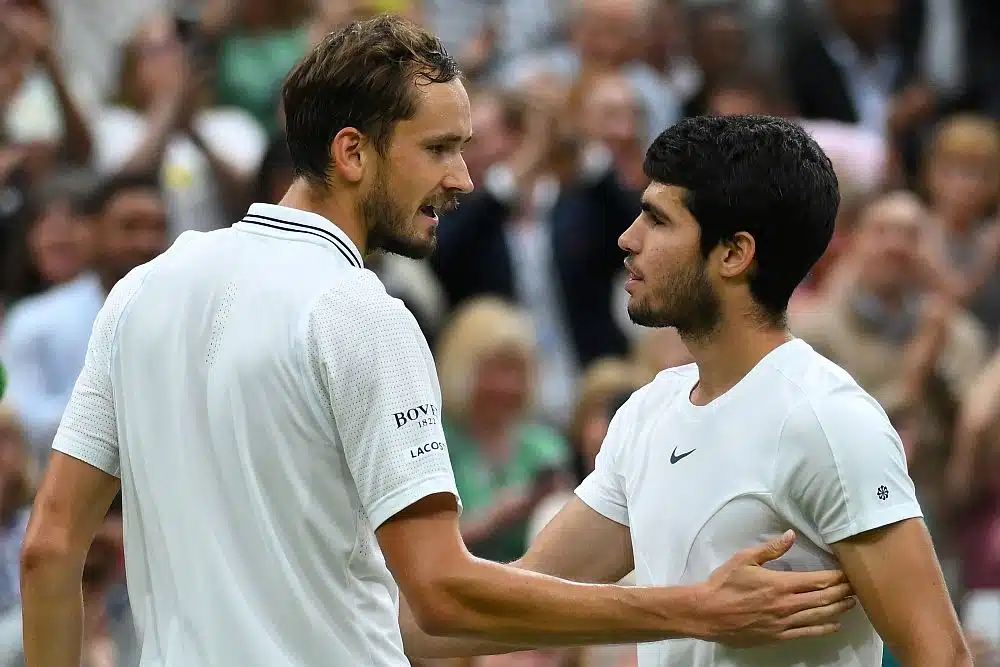 L’ultimo incontro tra i due fu nel Round Robin delle ultime ATP Finals, con il successo in due set di Carlos contro un Medvedev già sicuro del passaggio del turno. Al 2021 risale l’altro successo del moscovita, a Wimbledon con il murciano allora diciottenne e numero 75 della classifica sconfitto 6-4 6-1 6-2.