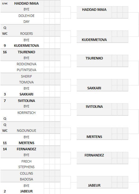 Tra le teste di serie presenti nella parte bassa in ordine di seeding troviamo: Sakkari (3), Haddad Maia (5), Svitolina (7), Kudermetova(9), Mertens (11), Fernandez (14) e Tsurenko (16).