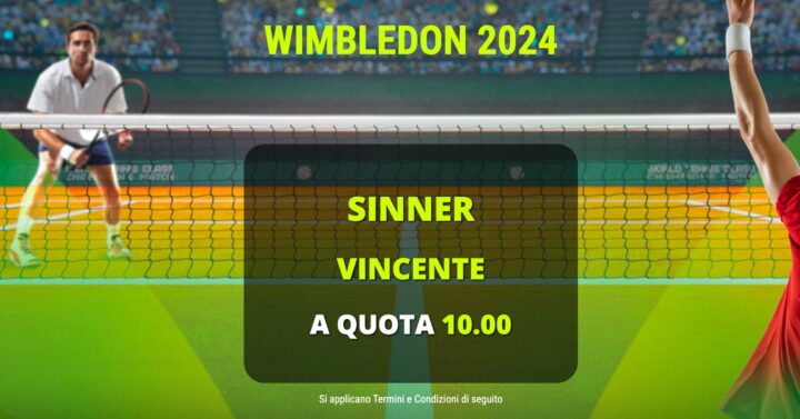 Wimbledon, ci siamo. Il torneo più atteso, più prestigioso, è alle sue battute finali, all’ultima curva o quasi: è tempo di quarti di finale, tempo di migliori 8. E oggi, uno storico martedì 9 luglio, il Centrale, il tempio del tennis, sarà terra di conquista per i colori azzurri. Aprirà le danze Jannik Sinner, il principale candidato a tornare da Londra con il trofeo. Il n.1 al mondo sfiderà per la dodicesima volta Daniil Medvedev, dopo averlo battuto nelle ultime cinque…soprattutto nell’ultima in uno Slam. Le quote sono abbastanza nette in favore dell’azzurro: 1,22–4,40 su Goldbet, 1,22–4,40 su Better e 1,20–4,50 su Bet365. Ma la vera quota importante per quanto riguarda Sinner non si esaurisce nel match odierno.