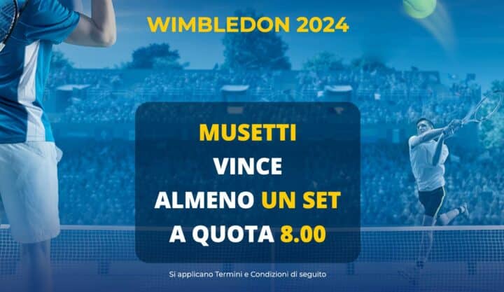 Reading: Wimbledon, dicono i bookies: Musetti sfavorito, ma la semifinale è lì. E arriva una super quota. Risale Djokovic