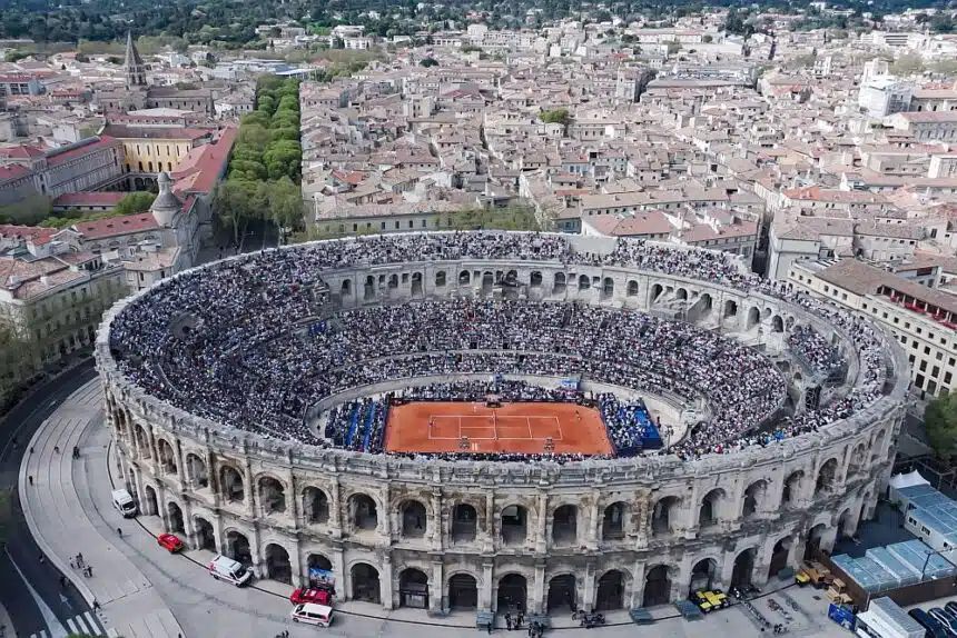 Il torneo esibizione infatti si è disputato nell’anfiteatro romano di Nimes, una struttura circolare risalente ad oltre 2000 anni fa che ha reso le partite di tennis simili alle battaglie tra gladiatori.