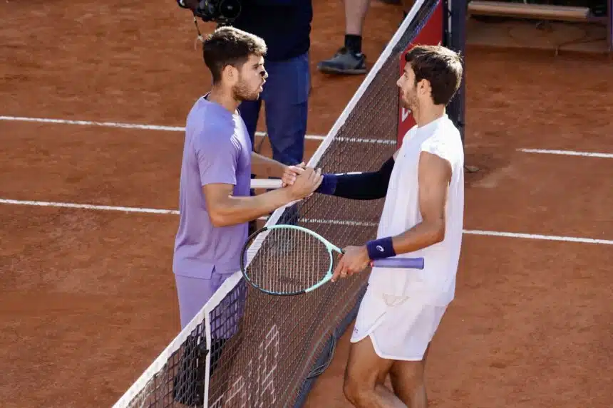 I precedenti tra i due, dicevamo. Sono sei e vedono il giocatore di El Palmar avanti con uno score di 5-1. Quello consumatasi sulla terra battuta degli Internazionali BNL d’Italia – l’ultimo in ordine cronologico – ci ha raccontato di un Carlos più reattivo all’alba del match, convivendo con le difficili condizioni di gioco, a dispetto di un Musetti che ha invece faticato per quasi un’ora prima di trovare un discreto feeling con il proprio gioco spumeggiante. L’incontro in questione, valevole per le semifinali deI prestigioso torneo italico, si è poi concluso con il punteggio finale di 6-3 7-6(4) a favore di Alcaraz. In principio, però, fu la finale di Amburgo nel 2022, quando con il punteggio di 6-4 6(6)-7 6-4 Lorenzo riuscì a diventare il quarto italiano a trionfare nella città tedesca e ad interrompere l’imbattibilità di Alcaraz nelle finali ATP (era 6-0, senza perdere neanche un set). Agli ottavi del Roland Garros del 2023, invece, Lorenzo dovette arrendersi – in tre set e con il punteggio finale di 6-3 6-2 6-2 a favore di Carlos – al giocatore iberico (che poi sarebbe stato battuto in quattro set dal futuro campione dello slam parigino Novak Djokovic).