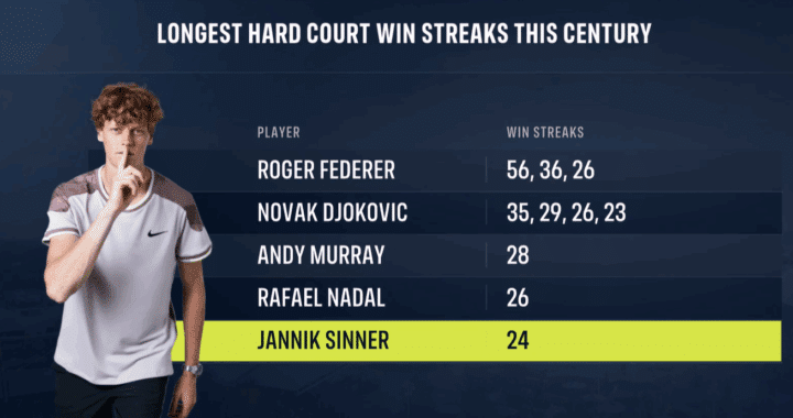 Mannarino guadagna la rete e si esibisce in uno smash molto angolato ma forse troppo… gentile e Sinner copre la distanza tra sé e la palla e infila il passante vincente di rovescio praticamente dal parterre. Adrian difende comunque il turno al servizio e fa la stessa cosa per raggiungere il 4-5, risultato che permette al numero uno del ranking di servire per il set ma che non cela alcuni impacci dell’asso azzurro, che non legge la battuta dell’avversario e non può spingere con continuità in contrattacco.