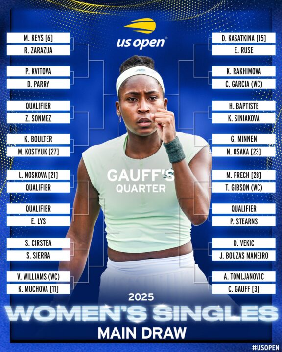 IL TABELLONE COMPLETO DELLO US OPEN 2025 (Singolare femminile)