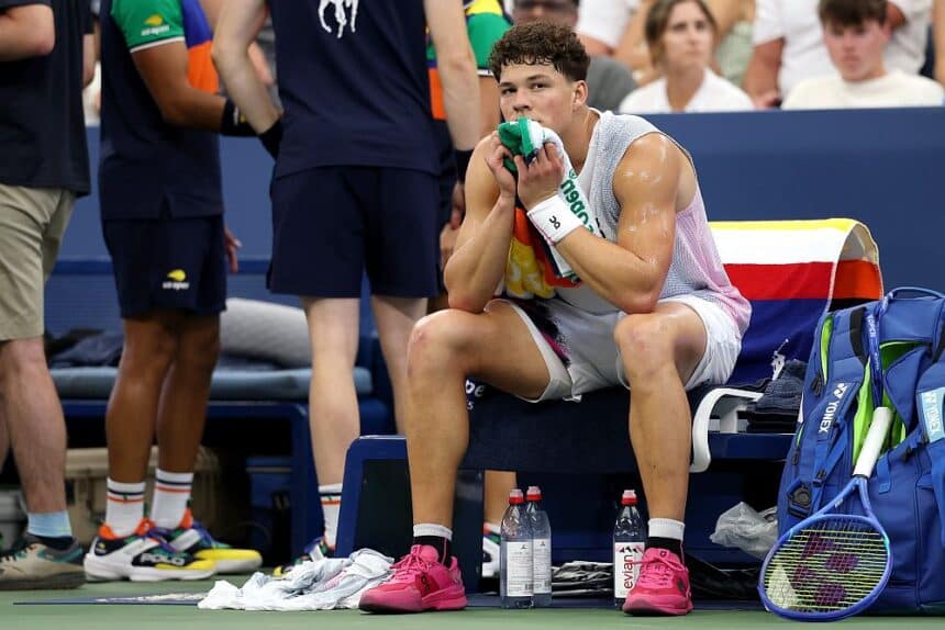 È un Ben Shelton triste, dimesso, quello che si è presentato nella sala interviste di Flushing Meadows dopo la fine del match contro Mannarino nel quale si è dovuto ritirare all’inizio del quinto set per un infortunio alla spalla sinistra.