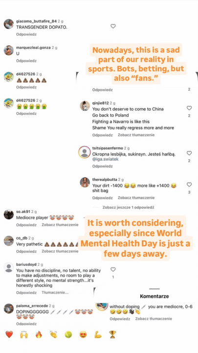 La tennista polacca si sfoga su Instagram dopo l'attacco social ricevuto in seguito alla sconfitta con Emma Navarro.