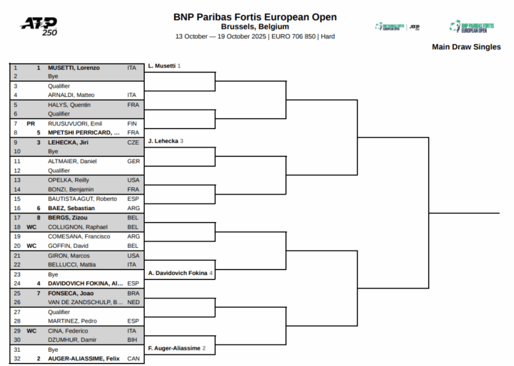 Dopo nove edizioni trascorse sulle sponde della Schelda, l’ATP 250 belga cambia casa: dal 13 al 19 ottobre 2025 sarà la capitale Bruxelles ad accogliere il circuito maggiore maschile, ospitando il BNP Paribas Fortis European Open all’ING Arena, struttura al coperto situata all’interno del complesso del Brussels Expo.