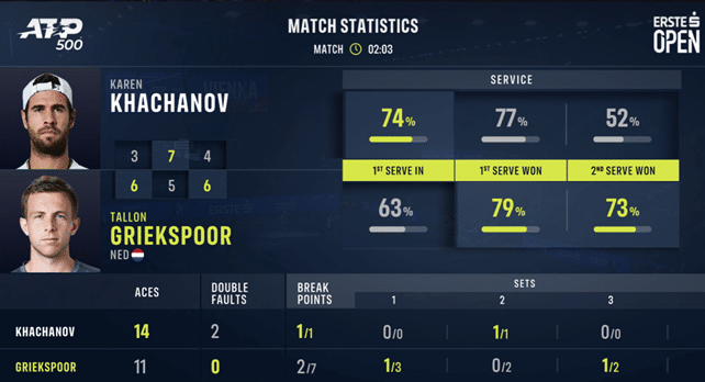 Primo set – Griekspoor d’astuziaSecondo set – Khachanov piazza la zampataTerzo set – Tallon ne ha di più