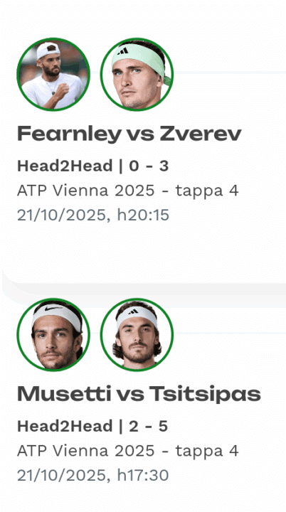 Zverev si presenta con status e continuità nettamente superiori: servizio dominante, rovescio in diagonale per congelare lo scambio e ottimo storico a Vienna. Fearnley ha fatto vedere progressi notevoli nel 2025, ma gli scontri diretti recenti ai grandi tornei hanno rimarcato il gap di esperienza e gestione dei momenti (US Open, Australian Open, Miami). Per l’upset servirebbe al britannico un over-perform al servizio e tanto coraggio in risposta e in uscita.