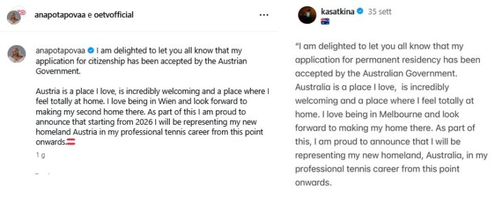 Potapova annuncia la cittadinanza austriaca, ma copia integralmente il post di Kasatkina!
