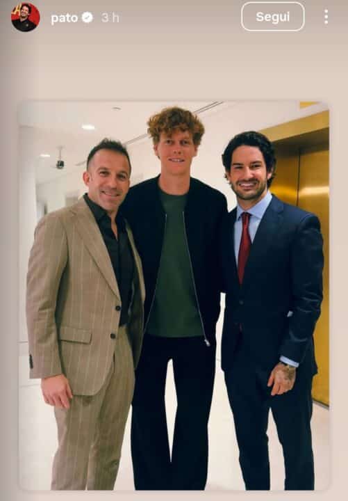 Un incontro da copertina tra campioni di epoche e sport diversi. Jannik Sinner, Alessandro Del Piero e Alexandre Pato si sono ritrovati insieme, con il brasiliano che ha condiviso lo scatto su Instagram scherzando con l’ex capitano bianconero: “Preparati, perché io e Jannik ci siamo messi d’accordo per batterti…”. Battute a parte, se sul campo da tennis il confronto sarebbe a senso unico, il numero due del ranking mondiale ha già dimostrato di cavarsela più che bene anche con il pallone.