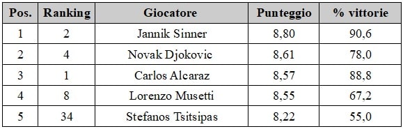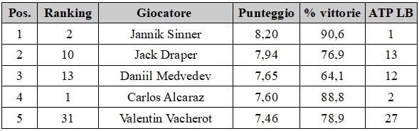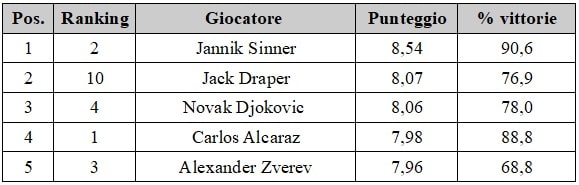 (fonti delle tabelle: TDI Tennis Insights, atptour.com)