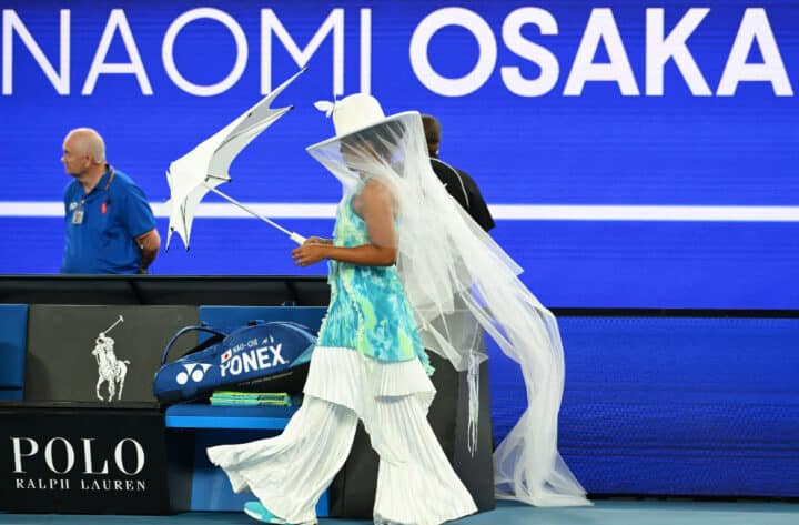 Naomi merita sempre un capitolo a parte in questa rubrica. Per questi Australian Open più a parte del solito. Perché una roba così non si era mai vista. La stralunata tennista nipponica si è presentata in campo munita di cappello con lunghissimo velo e un ombrello asimmetrico bianco, ampissimi pantaloni bianchi a pieghe, a nascondere un completo e relativa giacca azzurro con macchie verdine e tanti simil thulle penzolanti. Il riferimento, spiegato dalla diretta interessata, è alla trasformazione da crisalide in farfalla. Un outfit divisivo e che ha diviso. Tra chi lo ha trovato assolutamente visionario e chi ingiustificatamente sopra le righe. In ogni caso, un fashion statement notevole. E questo non si discute. Voto 8
