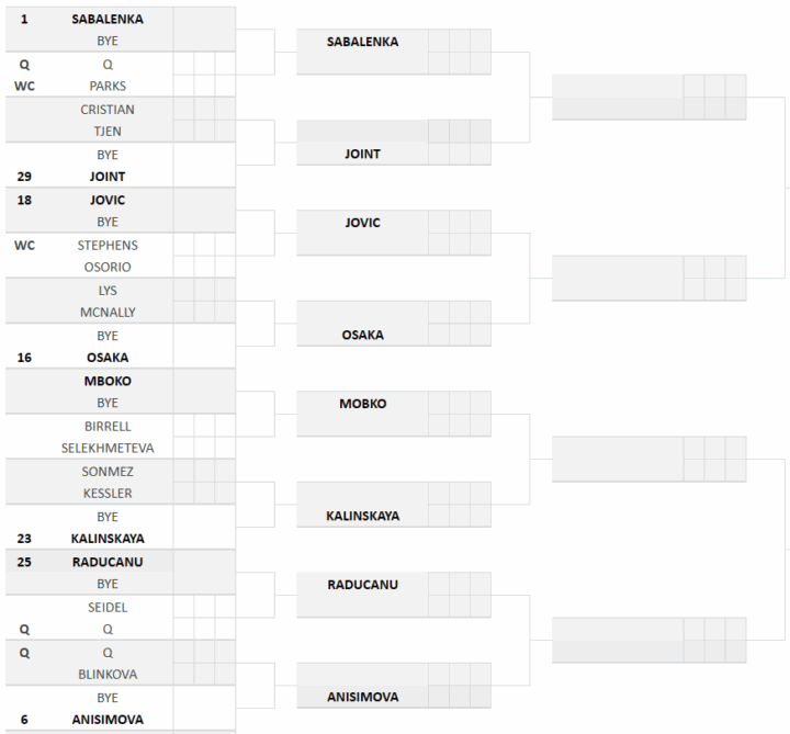 Quarto di lusso nella parte alta del tabellone, con Aryna Sabalenka che trova la potenza di fuoco di Osaka, Mboko e Anisimova nel suo stesso quarto.