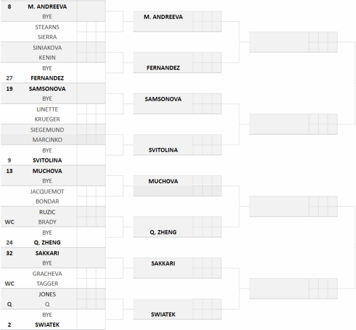 Percorso difficile anche per Swiatek, che dovrebbe incrociare Sakkari al terzo turno, Muchova al quarto e possibilmente la vincente tra Svitolina e Mirra Andreeva nei quarti.