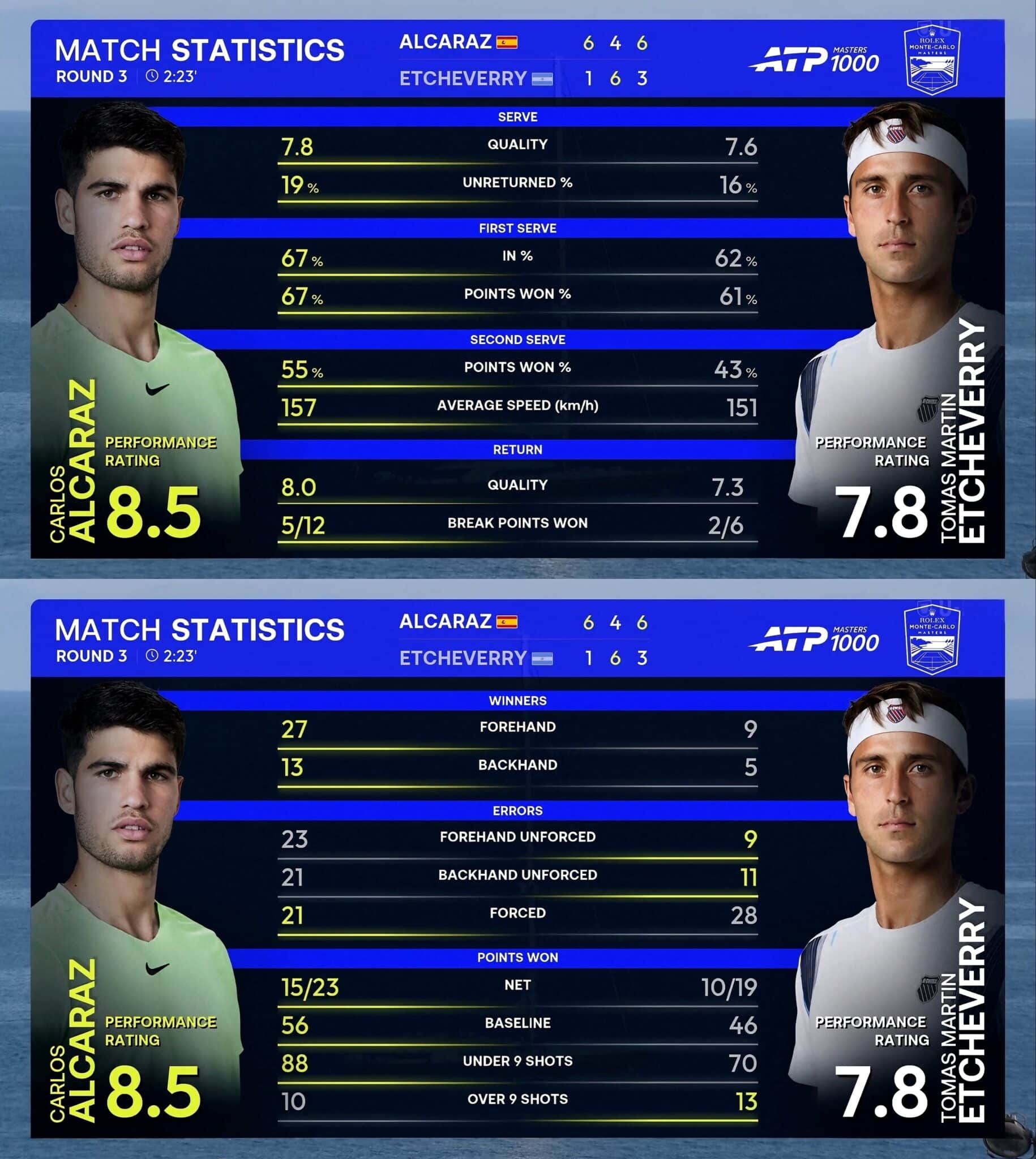 [1] C. Alcaraz b. T. Etcheverry 6-1 4-6 6-3
