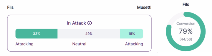 Questo dominio del francese si vede anche da dove hanno giocato, ovvero quanto dentro o fuori dal campo hanno giocato Fils e Musetti.