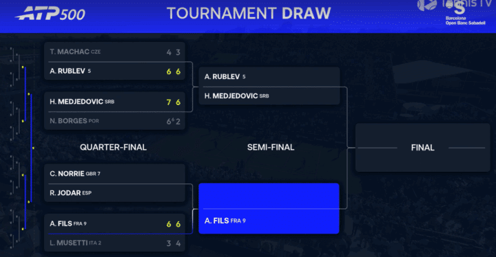 Match che si annuncia intrigante, con Fils e Musetti che qua a Barcellona hanno entrambi raggiunto le semifinali in passato (Musetti nel 2024, FIls nel 2025) e adesso cercano almeno di ripetersi. Match di non facile lettura, in quanto entrambi vengono da periodi di infortunio e sono alla ricerca della miglior condizione. Come dice Rublev sono due ottimi giocatori su terra battuta e dipende da chi scenderà in campo più pronto.