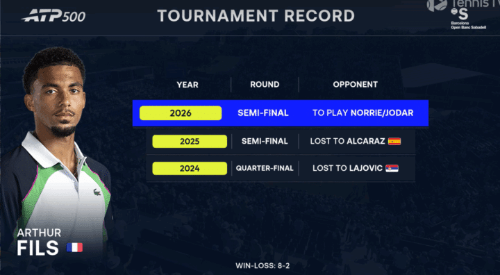 Arthur Fils – ATP Barcellona 2026 (foto via Twitter @atptour)