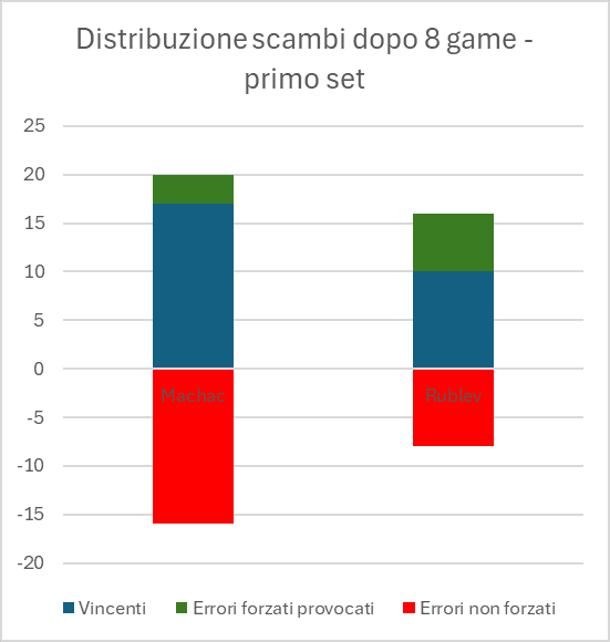 Machac sicuramente può recriminare per le occasioni mancate, in un set in cui incredibilmente il ceco ha vinto più punti in risposta che al servizio (15 contro 20, un dato che raramente si vede a questi livelli)