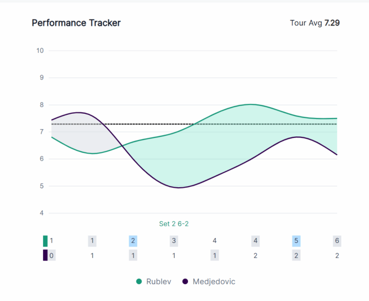 Seconda manche nella quale Rublev ha dato timidi segnali di risveglio, ma che per lo più è stata caratterizzata dal crollo di Medjedovic.