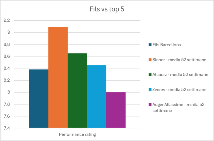 Fonte: Analysis by TennisViz; Data provided by Tennis Data Innovations – Performance rating, elaborazione propria