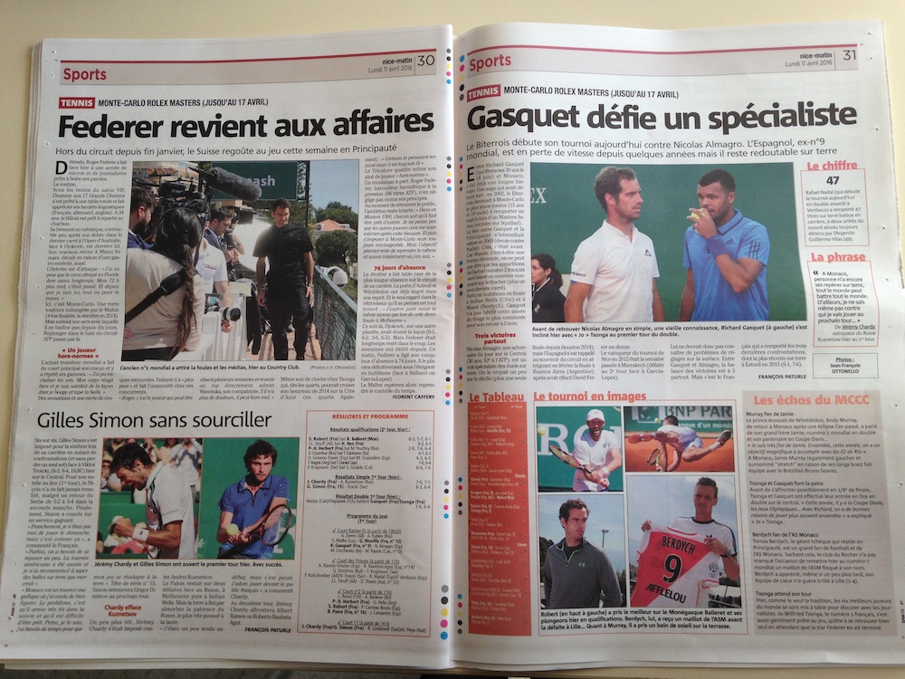 ATP Montecarlo: nei giornali francesi spazio a Federer, Simon, Berdych e Gasquet
