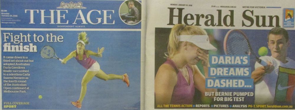 AO 2016: nelle prime pagine nazionali la sconfitta di Daria Gavrilova, tante speranze per Tomic, poche per Sharapova